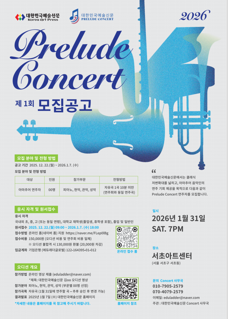 ❍ 2026 대한민국예술신문 제1회 Prelude Concert