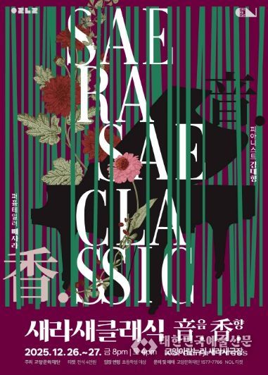 [대한민국예술신문] 고양문화재단은 오는 12월 26일~27일 양일간 크리스마스 시즌을 맞아 음악과 향기를 결합한 공감각 클래식 공연 새라새 클래식 '音음. 香향'을 선보인다. 이번 공연은 피아노 연주와 향(香)이 함께 어우러지는 형식으로 관객에게 클래식 음악을 보다 새로운 방식으로 경험할 수 있는 시간을 제안한다.
