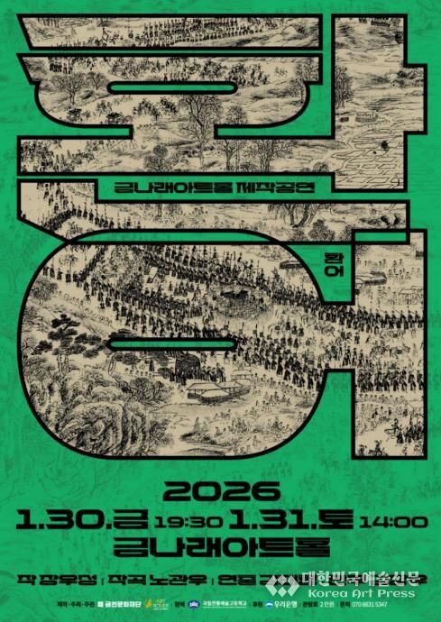 이번 공연에는 ▲ 한국연극 베스트7 선정작 연극 ‘빵야’, 뮤지컬 ‘멤피스’로 주목받는 김태형 연출 ▲ 2025년 제9회 한국뮤지컬어워즈 극본상 음악극 ‘섬:1933~2019’의 극작을 맡은 장우성 작가(드라마터그) ▲ 국립전통예술고등학교 김장우 교사(안무) ▲ 국악방송 한국음악 프로젝트 월드뮤직상을 받은 노관우 작곡가가 참여한다.