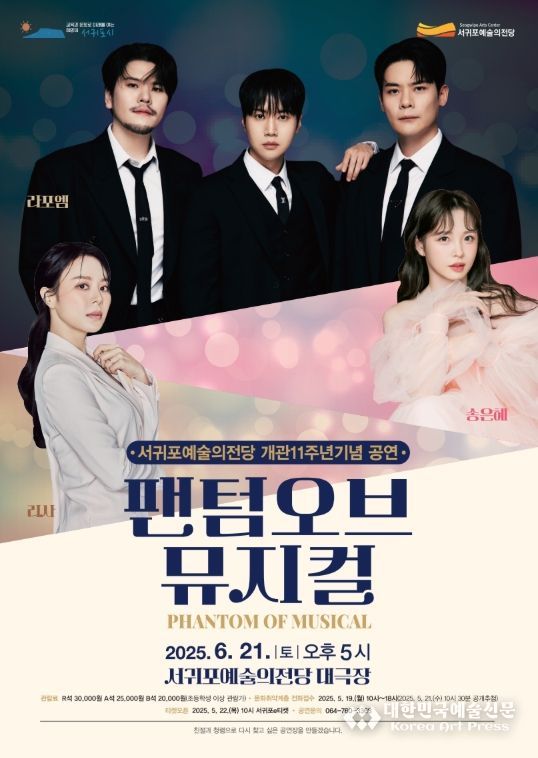 대한민국예술신문 관리자 기자 | 서귀포예술의전당은 개관 11주년을 맞아 오는 6월 21일 오후 5시, 서귀포예술의전당 대극장에서 기획공연 '팬텀 오브 뮤지컬'을 선보인다고 밝혔다.