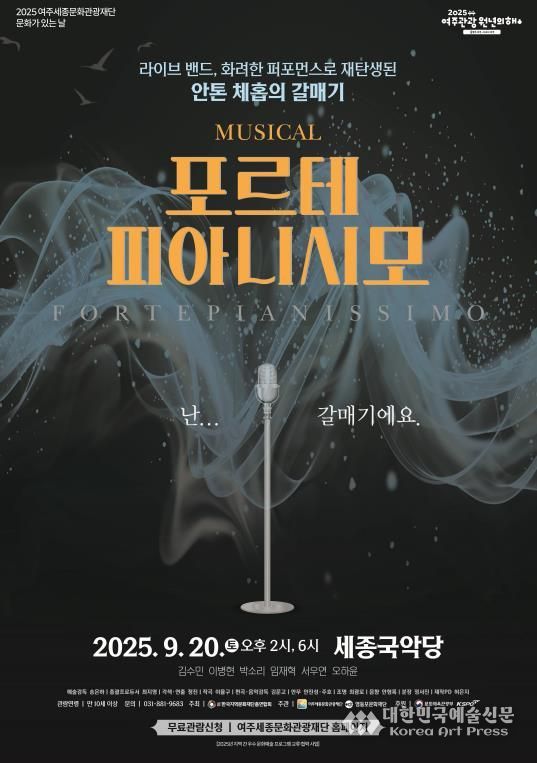 [대한민국예술신문] 여주세종문화관광재단이 오는 9월 20일 세종국악당에서 뮤지컬 ‘포르테 피아니시모’를 선보인다. 공연은 오후 2시와 6시, 총 2회에 걸쳐 무료로 진행된다.