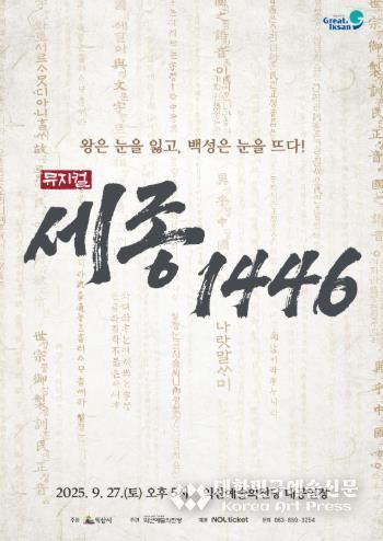 [대한민국예술신문] 익산예술의전당이 세종대왕의 일대기를 그린 뮤지컬 '세종 1446'을 오는 27일 오후 5시 대공연장 무대에 올린다고 10일 밝혔다.