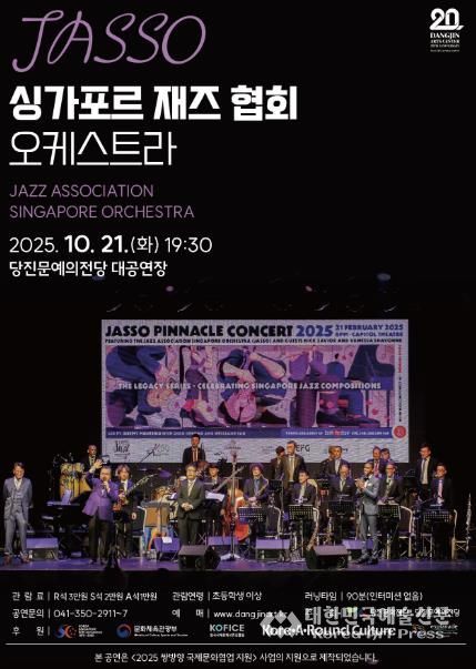 [대한민국예술신문] (재)당진문화재단은 문화체육관광부와 한국국제문화교류진흥원의 후원을 받아 추진하는 '2025 쌍방향 국제문화협업 지원' 사업의 일환으로, 오는 10월 21일(화) 오후 7시 30분 당진문예의전당 대공연장에서 싱가포르 재즈 협회 오케스트라(Jazz Association Singapore Orchestra, 이하 JASSO) 초청 공연을 개최한다고 밝혔다.