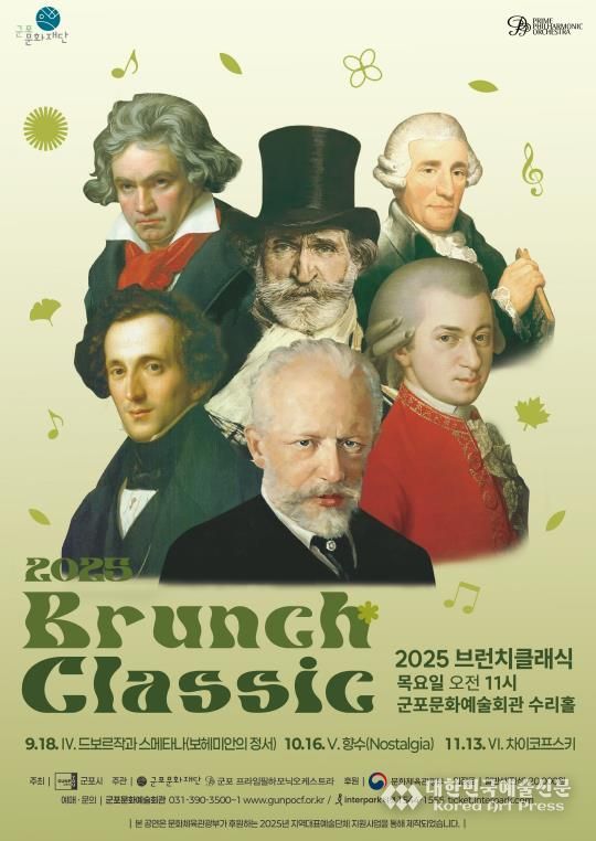 [대한민국예술신문] 군포문화재단은 오는 9월 18일 오전 11시, 군포문화예술회관 수리홀에서 ‘2025 브런치클래식’의 네 번째 공연을 개최한다.