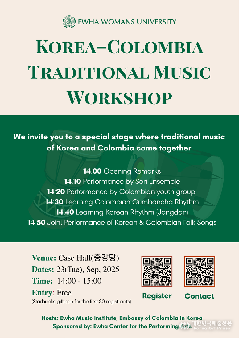 이화여자대학교 음악연구소 관계자는 “이번 워크숍은 단순한 공연을 넘어 한국과 콜롬비아 학생들이 서로의 문화를 이해하고 공감하는 뜻깊은 교류의 장이 될 것”이라고 밝혔다.