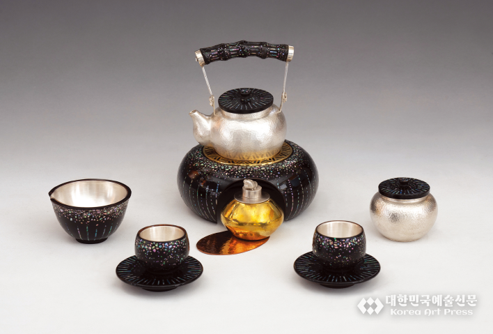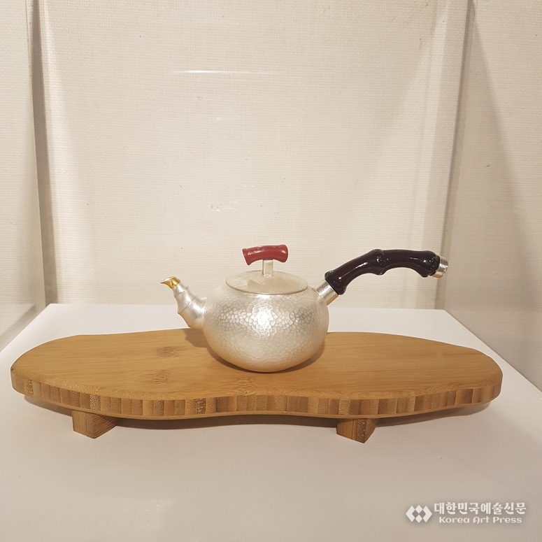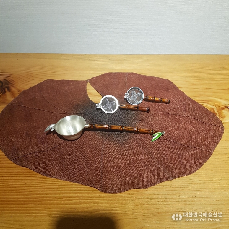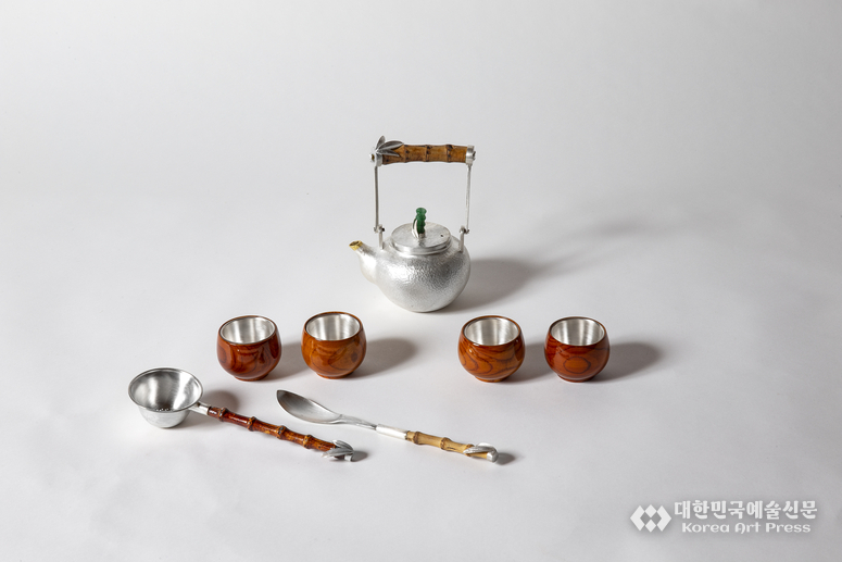Q. 담양의 대나무 뿌리를 은제 다구에 접목한 시도는 명인님만의 독보적인 시그니처입니다. 전혀 성질이 다른 두 재료를 결합했을 때의 미학적 시너지는 무엇인가요?