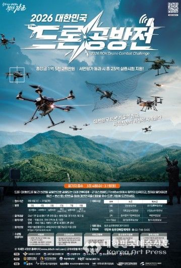 [대한민국예술신문] 포천시는 국방 무인체계(드론) 발전과 관련 산업계의 시너지 효과를 높이기 위해 국내 최초로 ‘2026 대한민국 드론 공방전(2026 KDCC)’을 오는 9월 개최한다.