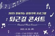 [대한민국예술신문] (재)인천중구문화재단(이사장 김정헌)은 오는 28일 저녁 퇴근길 시민들을 위한 특별한 문화 행사 ‘2025 영종 퇴근길 콘서트’를 개최한다. 이번 ‘영종 퇴근길 콘서트’는 구민들의 일상 속 문화예술 향유 기회를 확대하고, 다양한 장르의 문화 기획 프로그램을 통해 주민과 관광객이 함께하는 열린 문화공간을 조성하기 위한 취지로 마련됐다. 퇴근 시간대에 맞춰 진행될 이번 공연은 주민과 직장인들이 편하게 즐길 수 있는 ‘일상 속 문화예술 프로그램’으로 기획된 것이 특징이다. 먼저 오후 5시부터 5시 40분까지 인천 중구 제2청사(운남서로 100)에서 콘서트를 진행한 데 이어, 저녁 6시 30분부터 7시까지 공항철도 운서역 2번 출구 앞 광장에서 공연이 열릴 예정이다. 무료로 진행되는 이번 공연에서는 지역 예술인들이 참여하는 다채로운 음악 무대가 펼쳐진다. 이를 통해 퇴근길의 바쁜 일상에서 잠시 쉬어갈 수 있는 따뜻한 감동과 여유를 선사할 예정이다. 재단은 앞으로도 프로그램 콘텐츠 다양화와 예술인 네트워크 확대를 통해 지역 문화예술의 지속적 성장과 구민 문화 향유 증진에 힘쓸