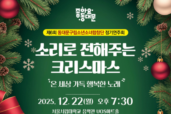 [대한민국예술신문] 세종시립청소년교향악단이 내달 6일 오후 5시 세종예술의전당에서 제6회 정기연주회 ‘윈터클래식-클래식으로 만나는 겨울동화’공연을 선보인다. 이번 연주회는 세종시가 유치한 국립청년예술단체 국립심포니콘서트오케스트라와의 협업 공연으로 열린다. 청소년과 청년 예술인들은 음악으로 소통하며 관객들에게 겨울의 낭만과 클래식의 깊은 감성을 선사할 예정이다. 이번 공연 1부는 ‘클래식 명곡으로 만나는 겨울’, 2부는 ‘영화와 함께 느끼는 겨울의 감성’으로 구성됐다. 1부에서는 모차르트, 차이코프스키 등의 명곡 연주를 통해 클래식의 정수를 만나볼 수 있다. 2부에서는 ‘겨울왕국’, ‘해리포터’, ‘하울의 움직이는 성’등 대중에게 친숙한 영화음악을 클래식 편곡으로 들려줄 예정이다. 총 11곡의 다채로운 곡을 만나볼 수 있는 이번 연주회는 가족 관객부터 클래식 애호가까지 모두 즐길 수 있는 겨울맞이 특별공연으로 열린다. 관람료는 무료지만 8세 이상부터 입장할 수 있다. [뉴스출처 : 세종시]
