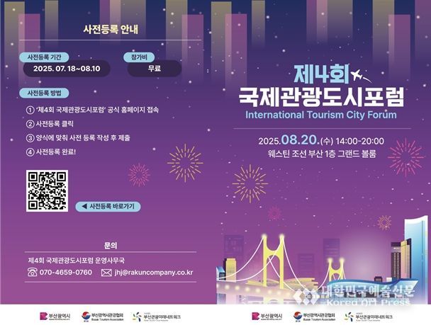 대한민국예술신문 관리자 기자 | 부산시는 20일 오후 2시 웨스틴 조선 부산(1층 그랜드 볼룸)에서 '제4회 국제관광도시 포럼'을 개최한다고 밝혔다.