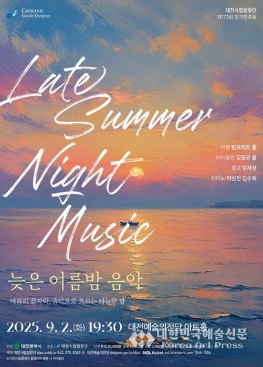 대한민국예술신문 관리자 기자 | 대전시립합창단이 오는 9월 2일 오후 7시 30분 대전예술의전당 아트홀에서 제172회 정기연주회 ‘늦은 여름밤 음악’을 선보인다.