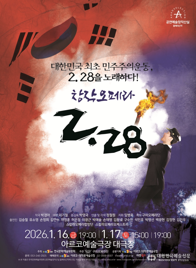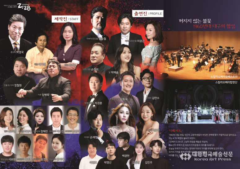 오페라는 세상이 변해도 변하지 않는 인간의 숭고함과 뜨거운 생명력을 우리에게 전달한다. 그렇다. 과거의 외침이 단지 기록에 머물지 않고 음악을 통해 현재의 우리에게도 자유와 정의의 가치가 얼마나 소중한지 전하는 오페라가 있다. 바로 창작오페라 <2. 28>이 그러하다.