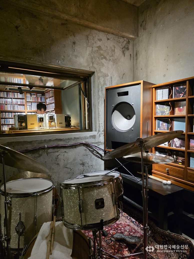 과연 어떤 곳일까? 궁금해하며 도착한 곳은 음악카페 '쿼터(QUARTER)'였다. 생각보다 작은 문을 열고 좁은 통로를 따라 들어서니 아담한 공간이 펼쳐졌다. 서너 개의 탁자와 피아노, 드럼 그리고 커다란 스피커와 벽면을 가득채운 수많은 CD가 공간을 가득 채우고 있었다. 자리에 앉는 순간, 친구의 비유가 과장이 아니었음을 알게되었다.