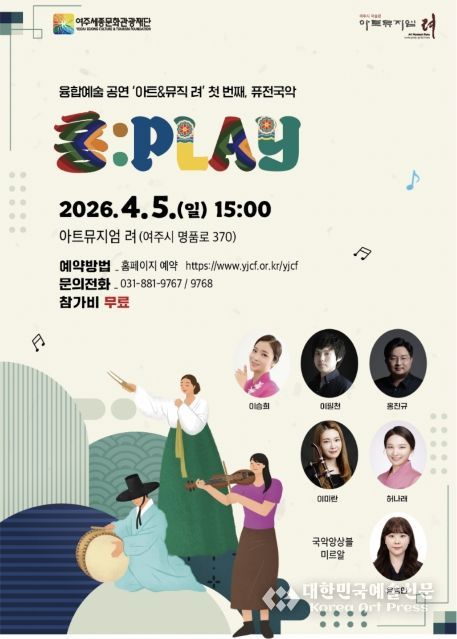 [대한민국예술신문] 여주세종문화관광재단은 '아트뮤지엄 려'에서 2026. 4. 5. 오후 3시, 미술전시와 공연예술을 함께 보고 듣는 융합예술 공연 ‘아트&뮤직 려’ 프로그램을 진행한다. 2026년 융합예술 공연에는 여주를 기반으로 활발히 활동하는 국악, 재즈, 클래식, 밴드, 사물연희 등의 공연예술단체들이 참여한다.