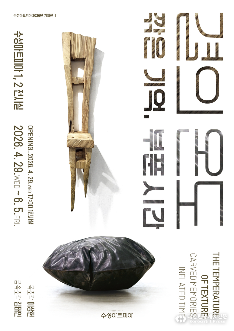 (재)수성문화재단 수성아트피아(관장 박동용)는 4월 29일부터 6월 5일까지 2026년 첫 번째 기획전시 <결의 온도: 깎은 기억, 부푼 시간>을 개최한다. 이번 전시는 이상헌(목조각)과 김태인(금속조각) 두 중견 조각가의 작품 세계를 통해 조각의 본질인 ‘물성’과 ‘촉각’을 재조명한다. 특히 이번 전시는 기존의 ‘눈으로만 보는’ 관람 관습에서 벗어나, 작가가 허용한 단 한 점의 작품을 관객이 직접 만지고 느낄 수 있는 ‘촉각 전시’로 기획되어 눈길을 끈다.