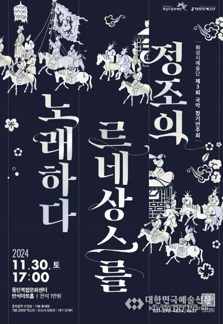대한민국예술신문 관리자 기자 | (재)화성시문화재단이 화성시 예술단 제3회 국악 정기연주회 ‘정조의 르네상스를 노래하다’를 개최한다.