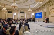[대한민국예술신문] 이재명 대통령은 2일 "기회와 과실을 모두가 함께 고루 나누는 모두의 성장만이 대한민국을 대도약의 미래로 이끌 지름길"이라고 강조했다. 이 대통령은 이날 오후 청와대 영빈관에서 열린 신년인사회에서 "2026년 병오년 새해는 회복과 정상화의 토대 위에서 우리 대한민국이 대도약을 향해 힘차게 달려나가는 새로운 한 해가 될 것"이라며 이 같이 말했다. 이날 신년인사회에는 '회복을 넘어 대도약의 길로'라는 주제어 아래, 민주주의의 회복을 발판 삼아 대한민국이 경제, 과학기술, 문화예술 등 전 분야에서 세계로 뻗어 나가는 성장의 미래 비전을 공유하기 위해 마련됐다. 행사에는 5부 요인, 정당 대표, 국무위원, 경제계 및 종교계 대표, 시·도지사 및 국민대표 수상자 등 약 200명이 참석했다. 행사는 국민의례 및 국민소망 영상 시청으로 문을 열었으며, 특히 2026년 본격적인 AI 시대를 맞아 국내 기업에서 제작한 감성 로봇 '리쿠(LIQU)'가 무대에 등장해 특별한 새해 인사를 전하며 참석자들의 눈길을 끌었다. 이어진 국민대표 포상에서는 각자의 자리에서 탁월한 역량과 묵묵한 헌신으로 국가의 위상을 높이고, 봉사와 희생을 통해 사회에 온기를 불어넣은
