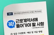 [대한민국예술신문] 체크! 알바·취업에 성공하셨다면, 잊지말고 확인하세요! ■ 근로계약서에 꼭! 들어가야 할 사항 *근로기준법 제17조 제2항 ① 임금 구성항목·계산 및 지급 방법 ② 소정근로시간 ③ 휴일 ④ 연차 유급휴가 - 작성 후 반드시 1부를 노동자에게 교부 - 위반할 경우 사업주 대상 500만 원 이하의 벌금 [뉴스출처 : 고용노동부]