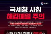 [대한민국예술신문] ■ 국세청 사칭 해킹메일 주의 최근 2026년 소득세 정기 환급 안내를 사칭한 해킹메일이 유포되고 있습니다. 국세청은 해외 개인 메일 계정으로 안내 메일을 발송하지 않습니다. 또한, '소득세 정기 환급 안내', '미납 세금 안내', '계정 확인 요청', '탈세제보', '세무조사'와 관련하여 메일을 보내지 않습니다. ■ 메일 수신 시 꼭 확인해야 할 Check List - 의심스러운 제목 → 열람하기 전에 삭제, 스팸메일 신고 tip1. 국세청은 '소득세 정기 환급 안내', '세무조사', '탈세제보' 관련 메일을 보내지 않습니다. - 모르는 발신자 주소 → 링크, 첨부파일 클릭 금지 tip2. 국세청 발신자 주소는 '@nts.go.kr', 'hometax.go.kr'입니다. - 계정정보 요구 → 아이디, 패스워드 입력 금지 tip3. 국세청 발신 메일은 계정정보를 요구하지 않습니다. ※ 사칭메일로 인한 피해가 발생한 경우 경찰청(사이버안전지킴이, 긴급신고 ☎112 또는 민원상담 ☎182)에 신고하여 주시기 바랍니다. [뉴스출처 : 국세청]